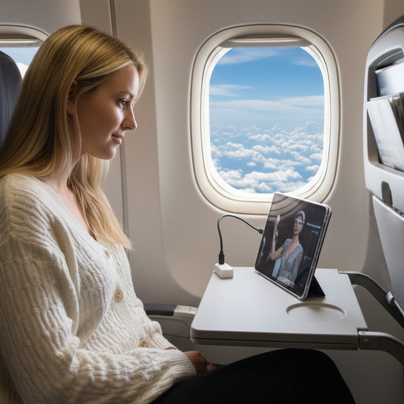 Long flight with nothing to watch? Connect the Bricbloc SSD to your iPad and play your movies instantly. Your personal cinema above the clouds.