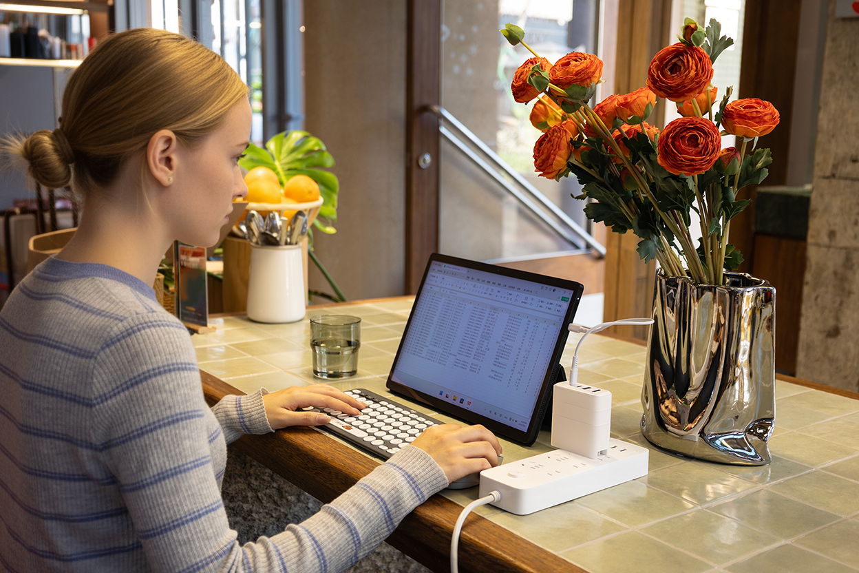 At a quiet cafΓ©, your MacBook Air hits low battery just as you get into focus. You pull out Bricblocβ€”fast GaN charging and a USB-A port for your mouse, all silent and sleek. Power returns, focus stays. You’re back in flow before your coffee cools.
