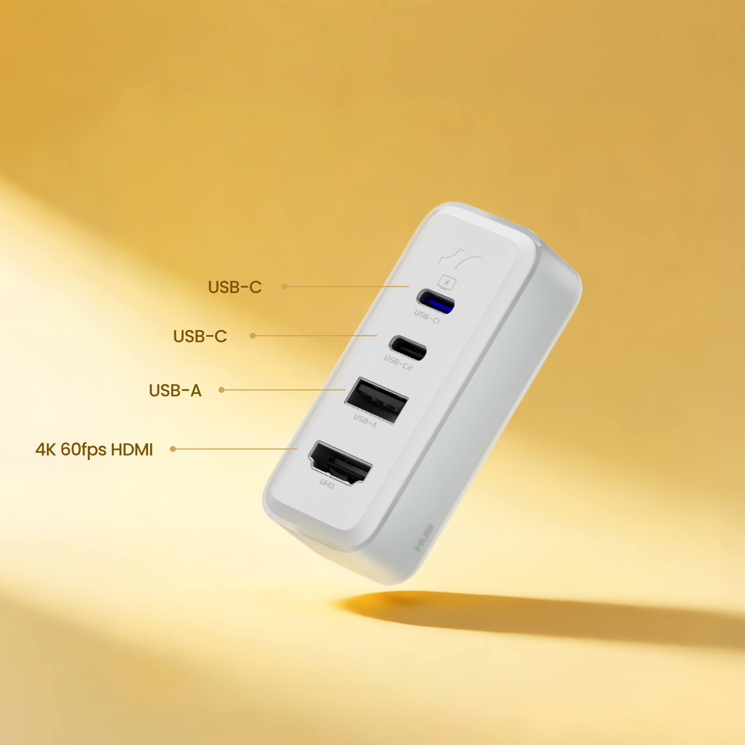 HUB module: HDMI 2.0, 10Gbps USB-C*2, 10Gbps USB-A ports.