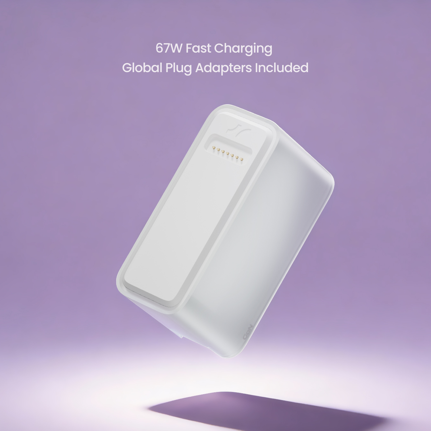 GaN module: 67W charging with US/EU/UK adapters. 1m USB-C Cable.
