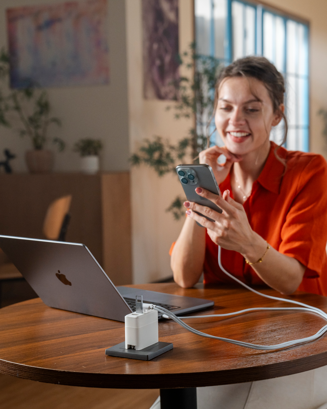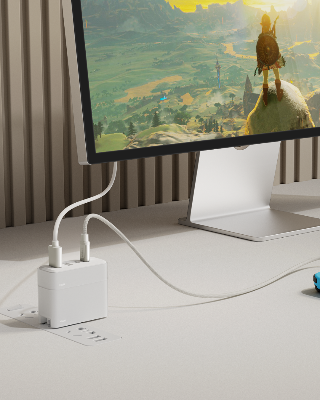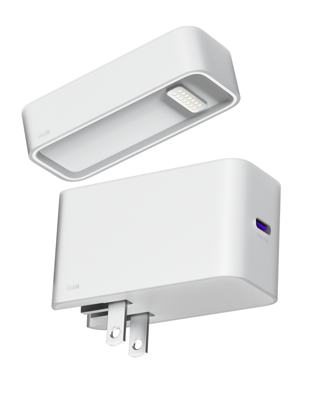 No more dangling hubs. The HUB snaps directly onto the Charger using our Halbach Magnetic Array, creating a vertical tower of power that saves 70% of your desk space.